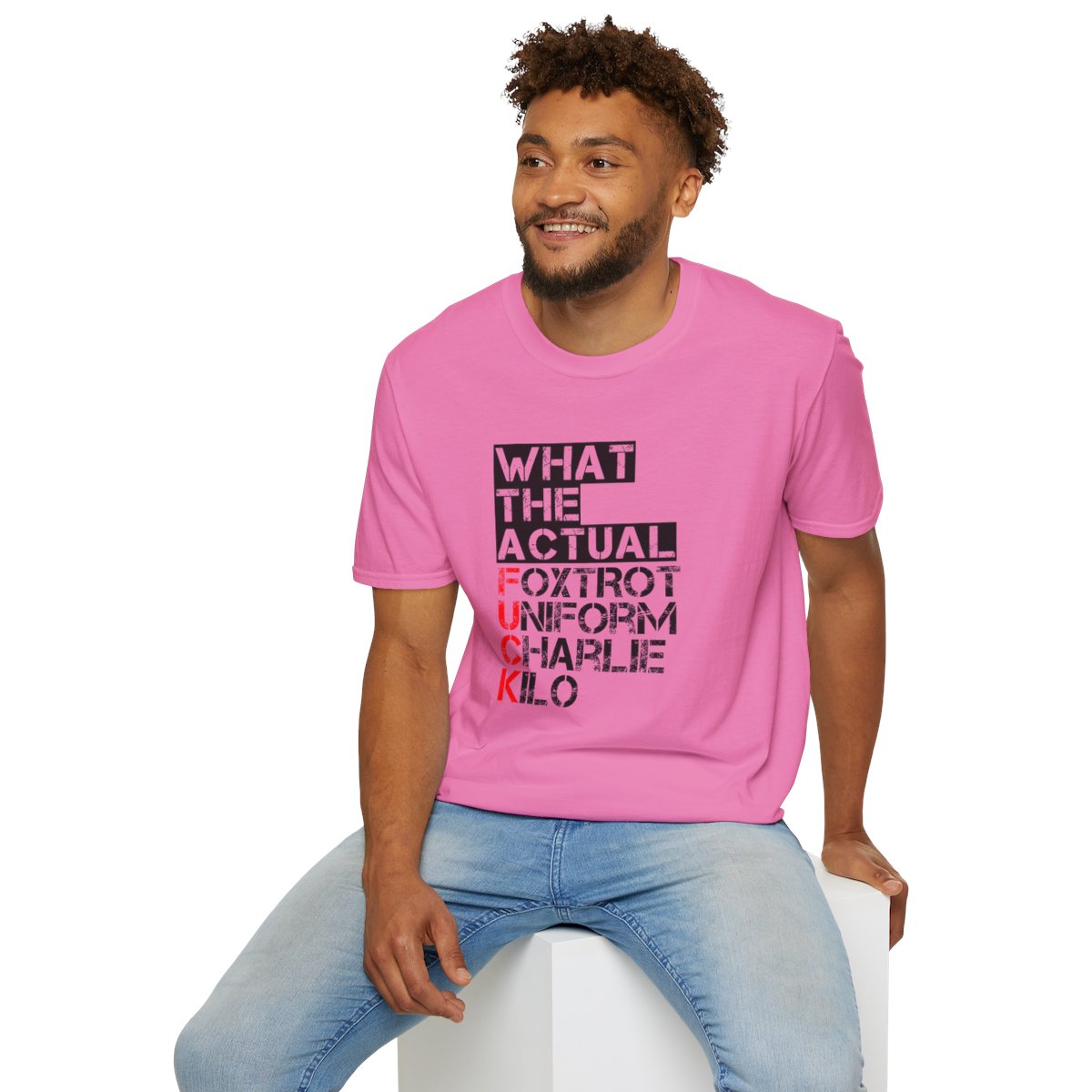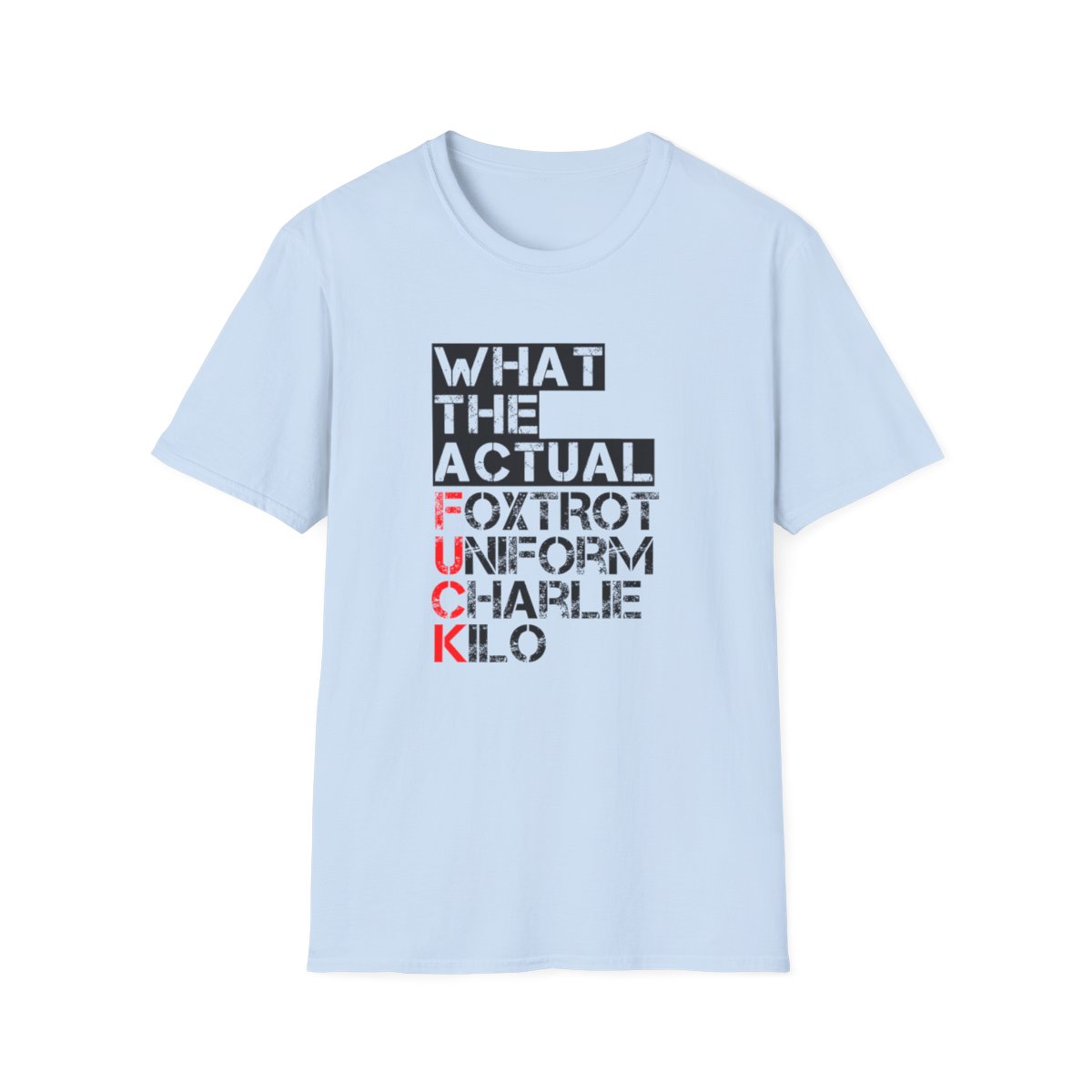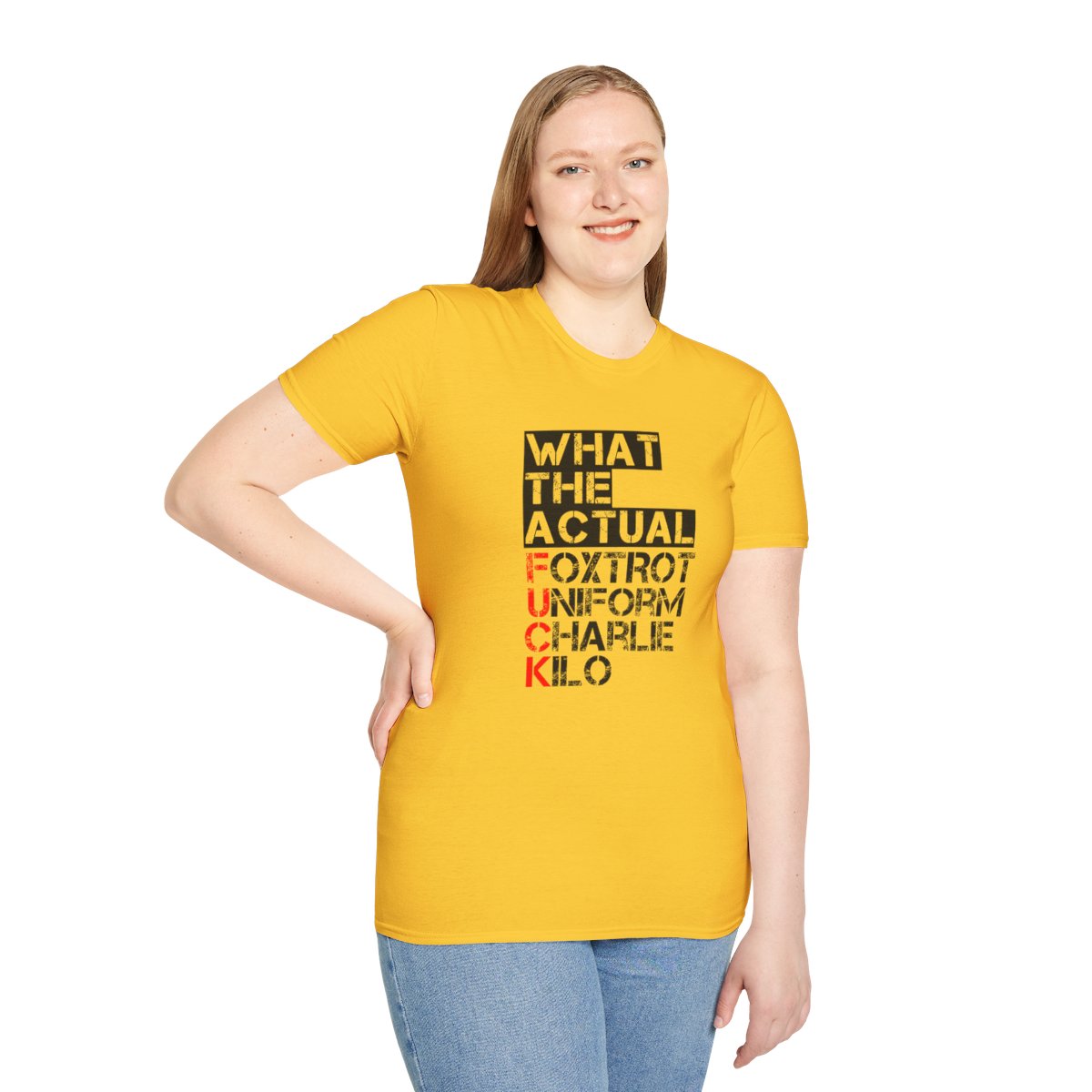 Funny phonetic alphabet slogan. For those who simply can’t understand what the hell is going on in the world!